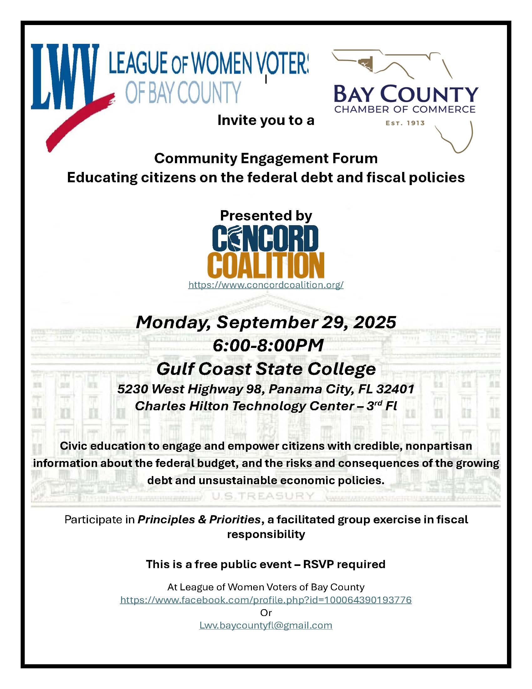 👉 For more information and to RSVP, visit: on Facebook or email lwv.baycountyfl@gmail.com